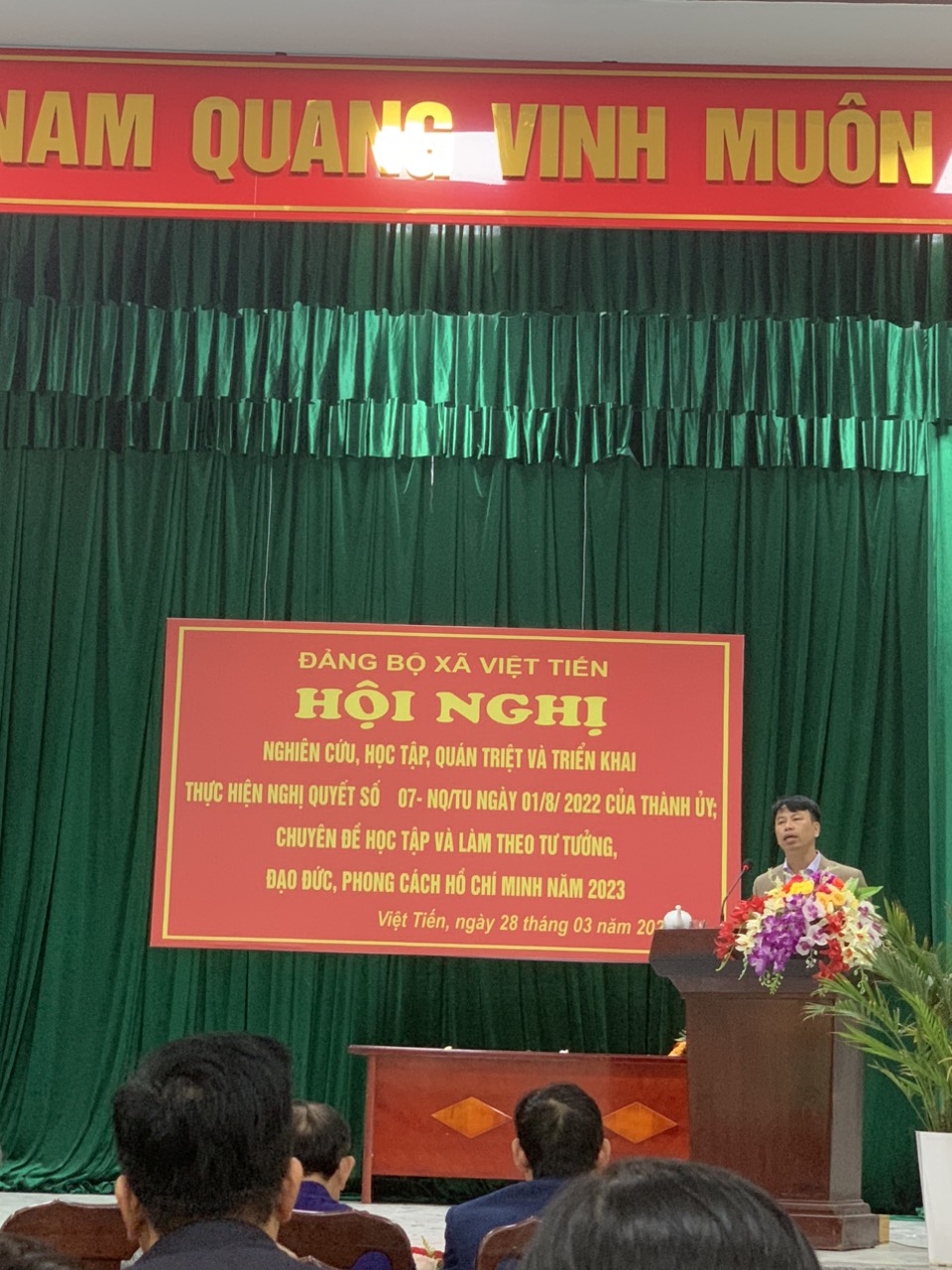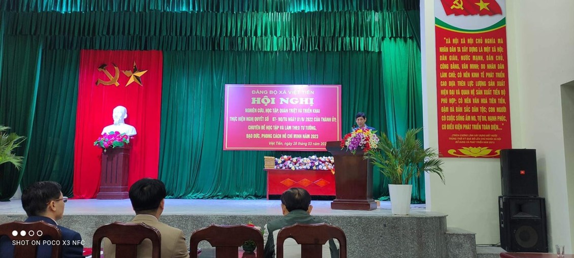 Thực hiện Nghị quyết 07-NQ/TU ngày 01/08/2022 của Ban Chấp hành Đảng bộ thành phố về “Một số giải pháp đổi mới và nâng cao chất lượng, hiệu quả công tác tư tưởng của Đảng bộ thành phố đến năm 2025, định hướng đến năm 2030”, vừa qua, Chi bộ Trường Mầm non Việt Tiến đã tham dự Hội nghị “nghiên cứu, học tập, quán triệt và triển khai thực hiện Nghị quyết số 07-NQ/TU của Thành ủy; Chuyên đề học tập và làm theo tư tưởng, đạo đức, phong cách Hồ Chí Minh năm 2023 tại UBND xã Việt Tiến”.