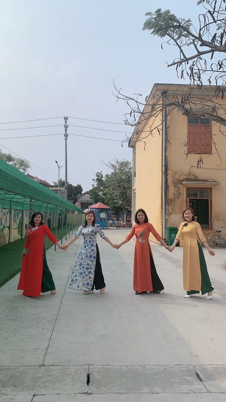 Mặc dù luôn bận bịu với công việc chuyên môn, xong các nữ cán bộ, viên chức, nhân viên trường Mầm non Việt Tiên luôn nhiệt tình hưởng ứng phong trào, giành ra những phút giây cuối giờ làm việc để khoác trên mình những chiếc áo dài truyền thống. Hình ảnh người nữ giáo viên duyên dáng, thanh lịch trong tà áo dài truyền thống Việt Nam vào ngày 08/3/2023.