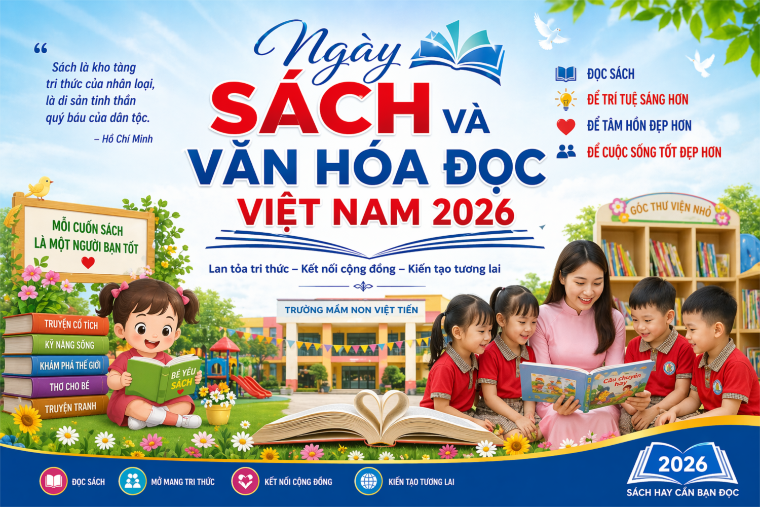 Thông qua các hoạt động hưởng ứng Ngày Sách và Văn hóa đọc Việt Nam, Trường Mầm non Việt Tiến mong muốn gửi gắm thông điệp: “Mỗi cuốn sách là một người bạn tốt”, góp phần xây dựng môi trường giáo dục thân thiện, tích cực, khơi dậy niềm đam mê đọc sách cho trẻ.